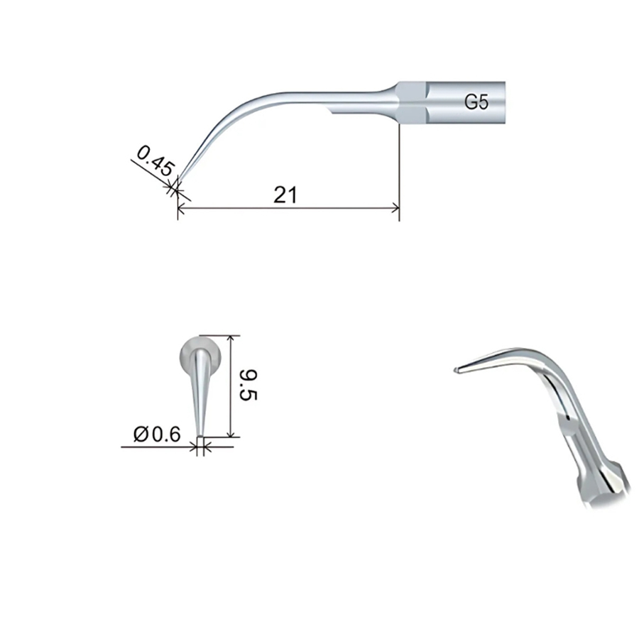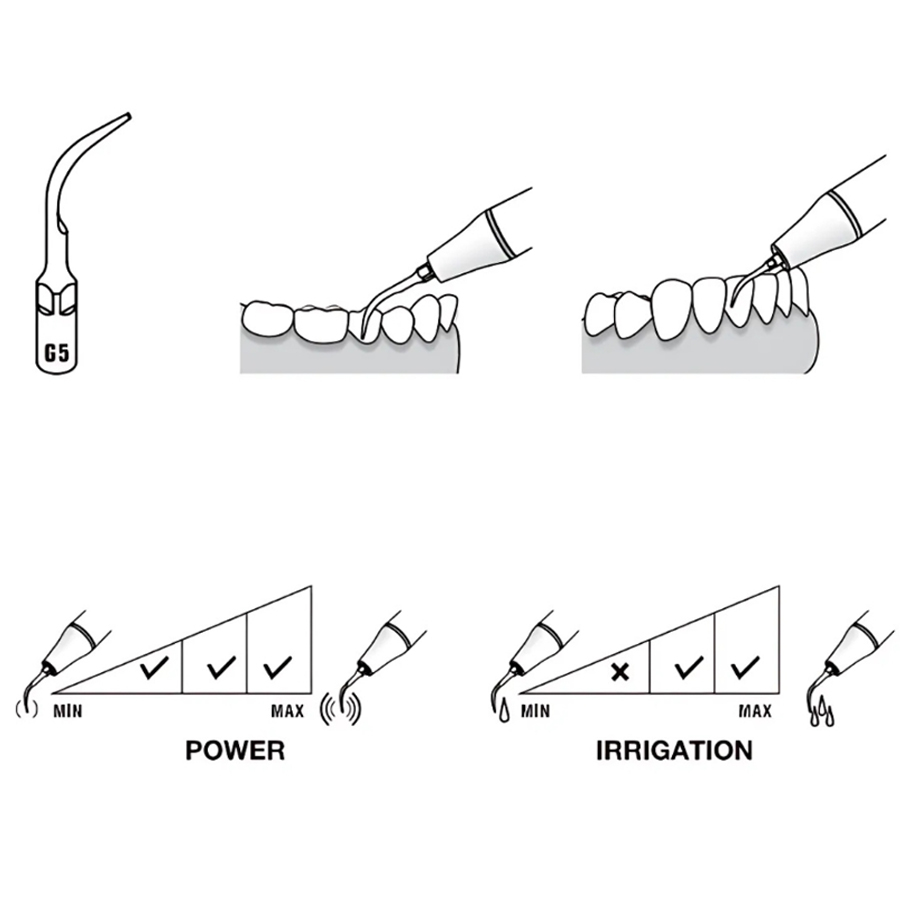 Насадка G5 призначена для видалення значних над’ясенних зубних відкладень, особливо в міжзубних проміжках та пришийковій області,