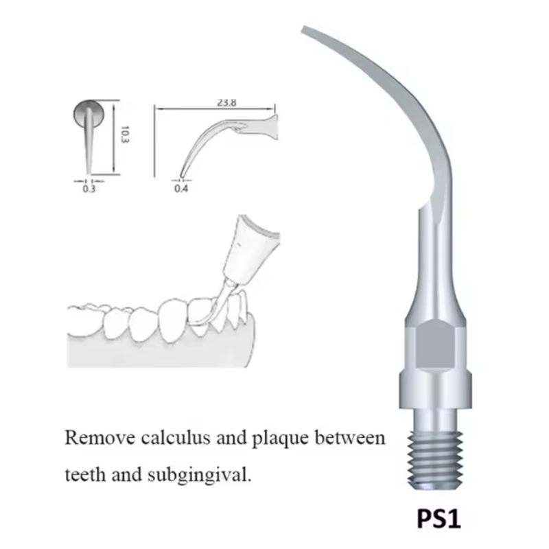 Вузький і гострий, рекомендується для очищення та ірргації зуба-ясенної борозенки або пародонтальних каналів.