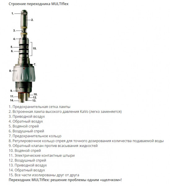 Підходить для всіх турбінних наконечників KaVo зі з’єднанням MULTIflex.