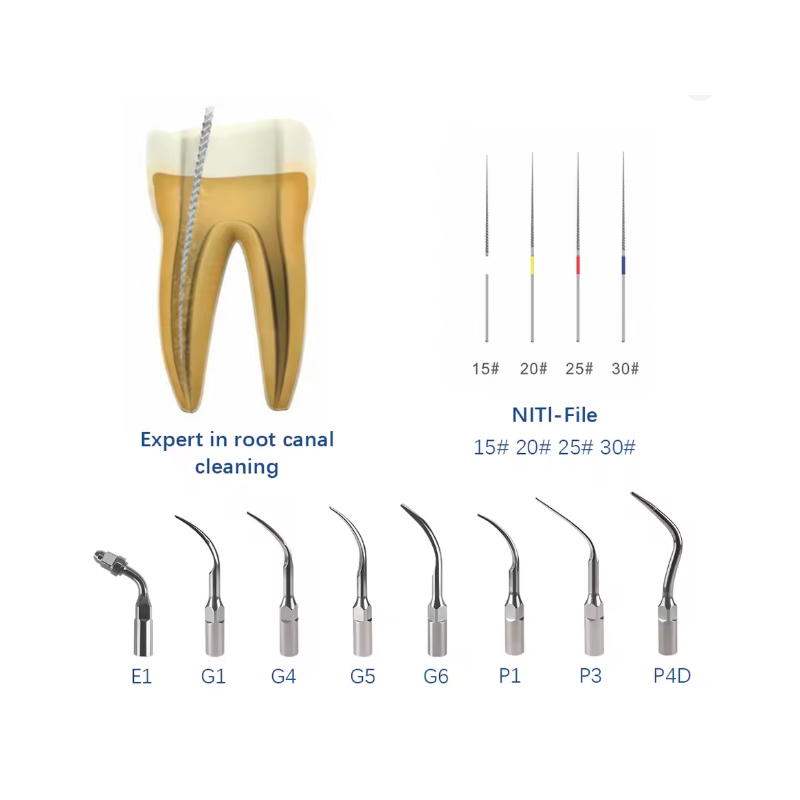 – Поставляється в комплекті з 8 насадками (G1, G4, G5, G6, P1, P3, P4D), ендочаком (E1 120°)