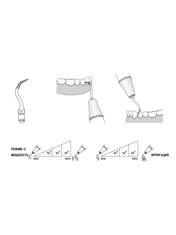 Удаление наддесневого налета во всех квадрантах, включая межзубные промежутки и десневые бороздки.